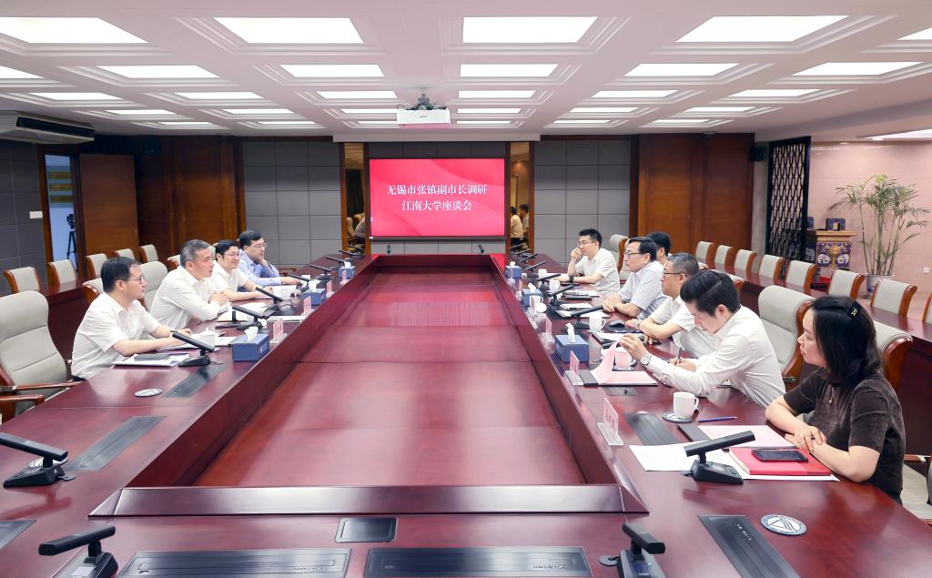 陈卫对张镇一行的到来表示欢迎,对无锡市长期以来给予江南大学的关心和支持表示感谢,他从办学规模、校区建设、学科建设等方面详细介绍了学校情况。马鑫从总体历程、运行机制、近年来取得的显著成效以及近期重点工作等方面介绍了市校共建江南大学的具体情况。