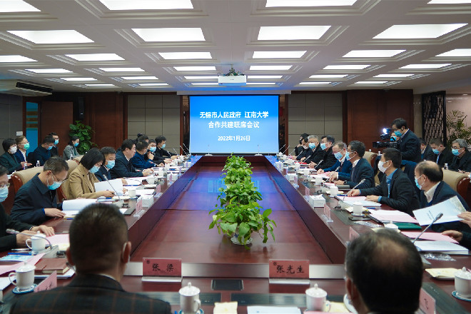 杜小刚作总结讲话。他指出,过去一年“强富美高”新无锡现代化建设迈出坚实步伐,这离不开江南大学的鼎力支持,希望双方更加紧密地携起手来,进一步提高合作共建的融合度、结合度、契合度,加快打造名城名校“彼此赋能、携手共进”的典范样板,以合作共建的实际行动迎接党的二十大胜利召开。他对推动市校合作共建再上新台阶提出明确要求,一是坚持以服务发展大局为合作方向,始终胸怀“两个大局”,牢记“国之大者”,把市校合作共建纳入战略布局和大政方针中科学谋划,聚焦服务国家和地区创新发展,开展全方位、多领域、深层次合作,通过政府购买服务等方式让江南大学深度参与无锡经济社会发展和城市现代化建设。二是坚持以落实协议内容为合作重点,充分发挥市校双方优势,聚焦共建目标任务,集中办好医学院和江阴、宜兴校区,高水平共建附属医院,加强与无锡关联度较高专业的人才引进和平台建设,发挥市场作用、用好各类基金,加速科技成果向现实生产力转化,有序推进《无锡史》编纂工作,共同探索具有示范意义的校地合作模式。三是坚持以机制改革创新为合作基础,以部省共建江南大学为牵引,加强配合协调、合作对接,形成高频互动机制、高效推进机制、高位保障机制,着力解决学校发展过程中遇到的实际问题,确保各合作事项落地落实。他表示,市委、市政府将坚决兑现市校合作共建协议各项内容,以实际行动践行“为建设一流大学提供一流保障”的承诺。