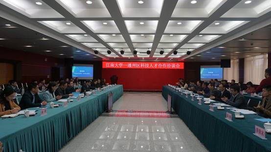 随后,通州区科技局和人社局负责人分别介绍了通州区的科技人才政策,王立介绍了我校学科建设、科研概况和产学研情况,吴小俊介绍了物联网学院的研究方向和领域,来自于食品学院、纺织服装学院和物联网学院的五位老师对各自团队的最新科技成果进行了推介。