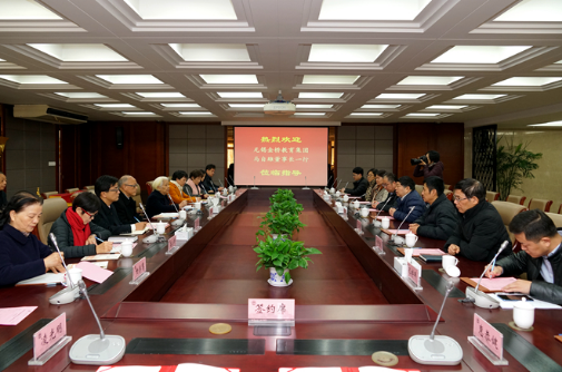 12月4日上午,我校与无锡金桥教育集团合作签约仪式在我校举行。金桥教育集团董事长马自雄、总经理马翀,无锡金桥双语实验学校校长周慰俐,以及集团和学校相关领导一行13人来访我校;中国工程院院士、我校校长陈坚,党委副书记戴月波,以及工会、地方服务与合作办公室、人文学院等部门主要负责同志参加了会议。会议由校长助理、校长办公室主任张光生主持。
