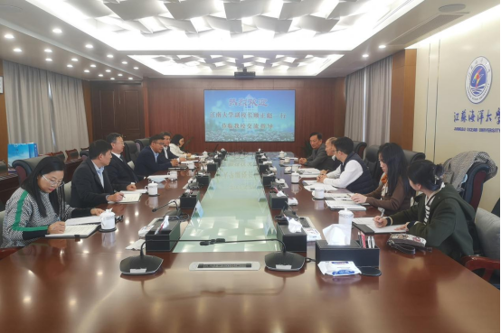 山海不畏远,携手向未来。11月8日上午,顾正彪一行赴江苏海洋大学调研座谈。会上,宁晓明、顾正彪分别介绍了两校基本情况和发展近况,与会人员围绕近日签署的校际合作协议有关内容进行交流。顾正彪讲话指出,江苏海洋大学与江南大学在学科建设、人才培养、科学研究等方面具有较强的关联性和互补性,有深化合作的现实需求和长远需要。他表示,江南大学将与江苏海洋大学一道,落实好省委省政府关于深化南北结对帮扶合作、优化结对帮扶合作关系的部署安排,进一步聚焦重点领域加强互动交流,发挥各自优势、强化资源共享、实现共同发展,携手助力区域协调发展和高等教育内涵式发展。会上,宁晓明、顾正彪互赠学校文创作品。