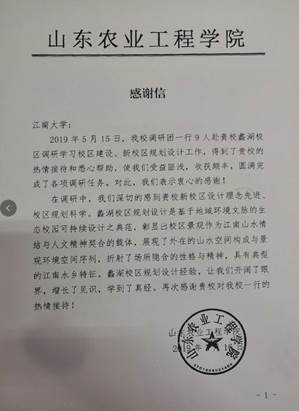 翌日,山东农业工程学院专程发来感谢信,再次感谢我校的热情接待和对其学校新校区建设的帮助支持。