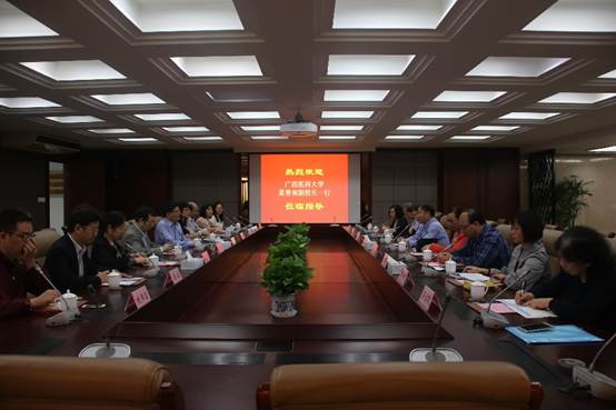 5月4日上午,广西医科大学莫曾南副校长一行9人来校调研。我校副校长顾正彪,校长办公室、财务处、组织部、发展规划与重大项目办公室等部门负责人接待了来访宾客。